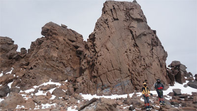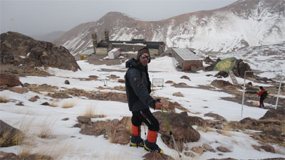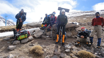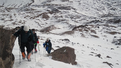 به دليل سرماي هوا چادرها را داخل جانپناه علم كرده و پس از صرف شام و اماده كردن كوله روز بعد . زودتر به كيسه خوابها خزيده و استراحت ميكنيم . صبح روز بعد ساعت شش صبح تيم پس از صرف صبحانه كامل به سمت قله حركت مينمايد مسير اكثرا داراي شيب تند همراه برفكوبي و گاها جاهايي برف يخ زده كه احتياج به كوبيدن نوك كفش جهت فرو رفتن در برف بود. در بعضي نقاط به خصوص نزديكي سنگها گاها تا كمر در برف فرو ميرفتيم كه ما به شوخي اسمش رو تله گذاشته بوديم. پس از دو ساعت باد تندي شروع به وزيدن گرفت و اين سختي صعودمان را بيشتر ميكرد .