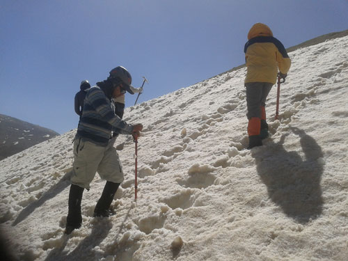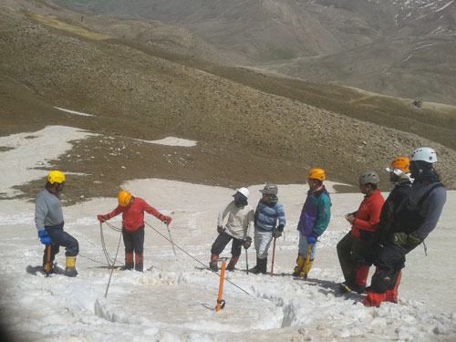 دوره مقدماتی برف و یخ در تاریخ 27 تا 30 فروردین ماه در پیست سپیدان شیراز تشکیل شد . تیم سه نفره ای از خانه کوهنوردان آقایان علی میرزایی . حسین علیرضایی و سجاد علی آبادی در این دوره شرکت نمودند . این دوره با پیگیری و همکاری آقای رضا کاظمی از تیم اماوند تشکیل شد و تیم هشت نفره ای از اماوند نیز ما را همراهی کردند . بعد از حضور در محل و اضافه شدن چند دوست دیگر از شیراز دوره اغاز میشود تیم تفکیک شده خانمها با مریبیگری استاد اخگر و آقایان با مربیگری استاد کشاورز اموزشها را آغاز مینمایند. باغچه گل لاله واژگون در کناری از پیست خودنمایی میکرد عکسی به یادگار می اندازیم.