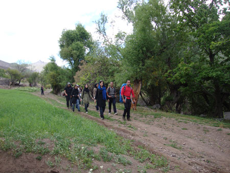 دو ساعت بعد با گذر از چند باغ زیبا درختهای هلو و زردالو و البته آلوچه به روستای ده حسین میرسیم که به نام تنها ساکن آن آ قای حسین سیف الله نامگذاری شده است . از روستای ده حسین به بعد پوشش گیاهی قدری تغییر میکند و مستلزم عبور از بین درختان بید و زرشک میباشد که قدری سرعت تیم را کم میکند .