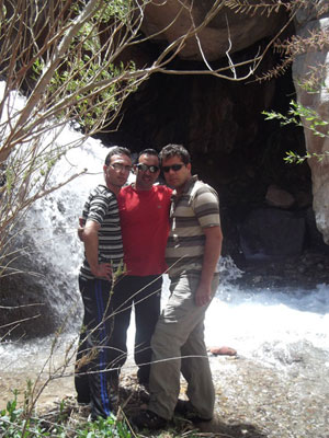 یک ساعت و نیم پس از روستای ده حسین به اولین آبشار منطقه میرسیم . آبشار زیبا که از بالای صخره ای صاف و بزرگ به پایین سرازیر میشد.